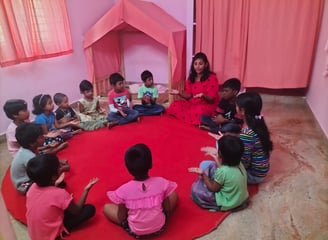 Our Playgroup and Pre.KG program is rooted in the power of play -offering a safe, nurturing space where young children explore, imagine, and grow through hands-on, joyful experience
